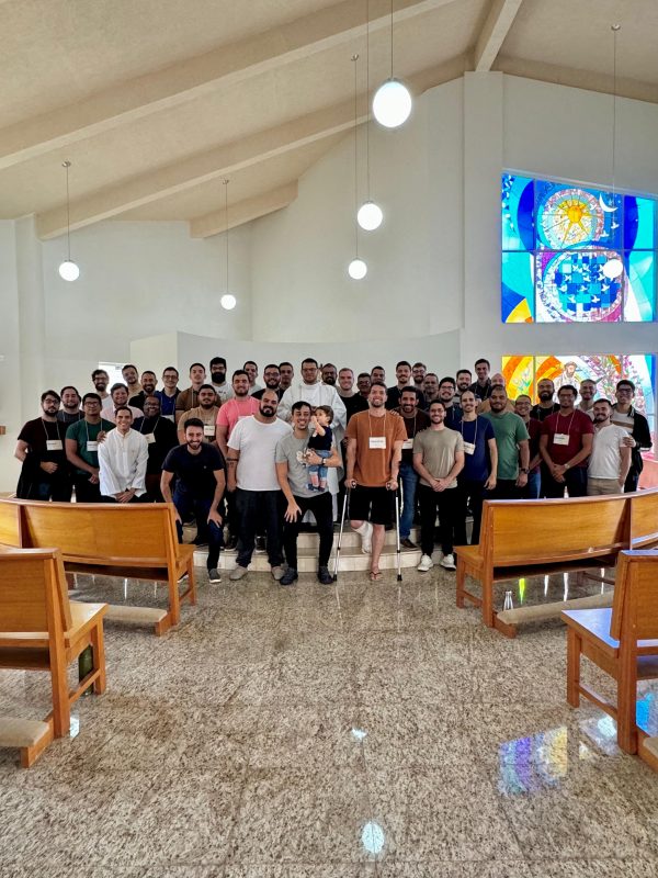 Ao final do encontro, todos os homens ali presentes se reuniram para juntos rezar – e de joelhos! –, pois, como Jerônimo destacou durante o aprofundamento: “existem batalhas que só se vencem com o joelho no chão!”. Bendigamos a Deus por tudo o que Ele fez a nosso favor nesses dias e rezemos pelas vidas e vocações desses homens que o Senhor chamou para ser e formar nesse encontro.