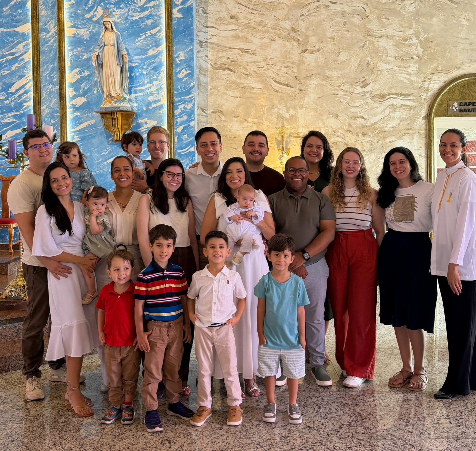 Os missionários Rafael e Layane Gaia, pais de Pedro, tiveram a graça de testemunhar o batismo de seu terceiro filho na Paróquia Nossa Senhora das Graças da Medalha Milagrosa (Asa Norte/DF). O sacramento foi celebrado pelo Diácono Paulo César, e os padrinhos de batismo foram Lara Gaia e Luiz Borges, irmã e cunhado de Rafael; já a madrinha de consagração foi Alexandra Araújo, também missionária desta Rede de Missão.